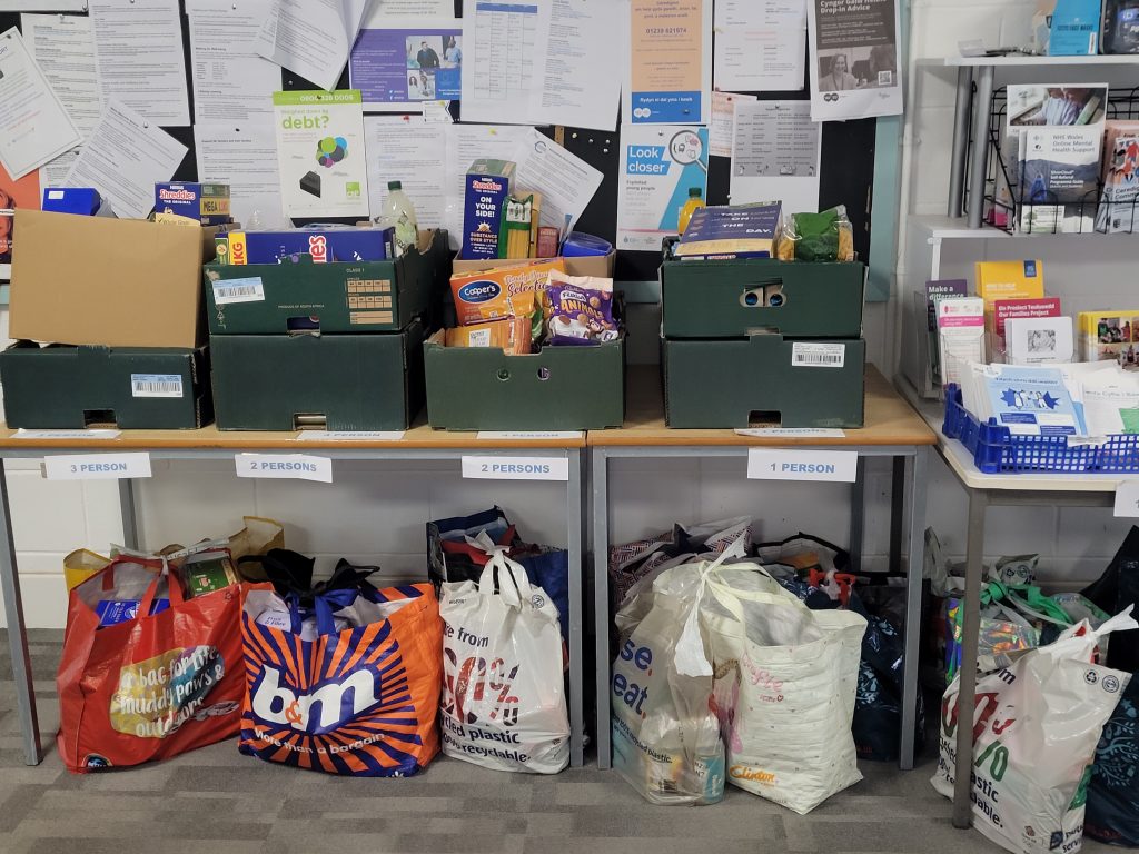 Drop-off at Tesco Cardigan, in partnership with Fareshare – Tesco-purchased items only, please.